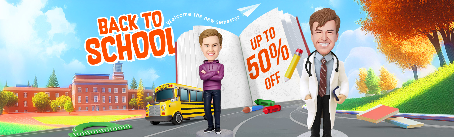 Female Students Wearing Denim Shorts Custom Bobblehead with Engraved Text -