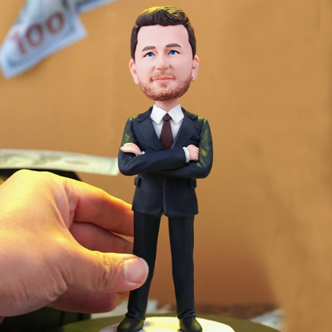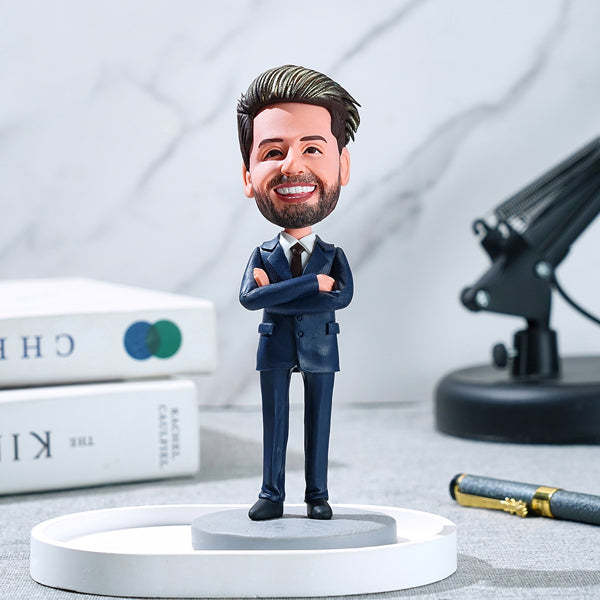 Businessman Custom Bobblehead Wearing Suit With Engraved Text Gift For Him