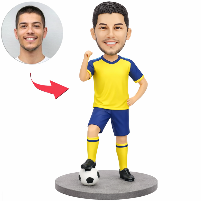 Personalized Sweden Style Soccer Bobblehead from Photo, Custom Bobblehead Engraved with Text