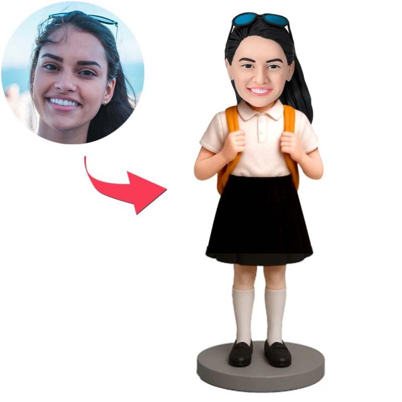 Female Students Wear Black Short Skirt Custom Bobblehead with Engraved Text