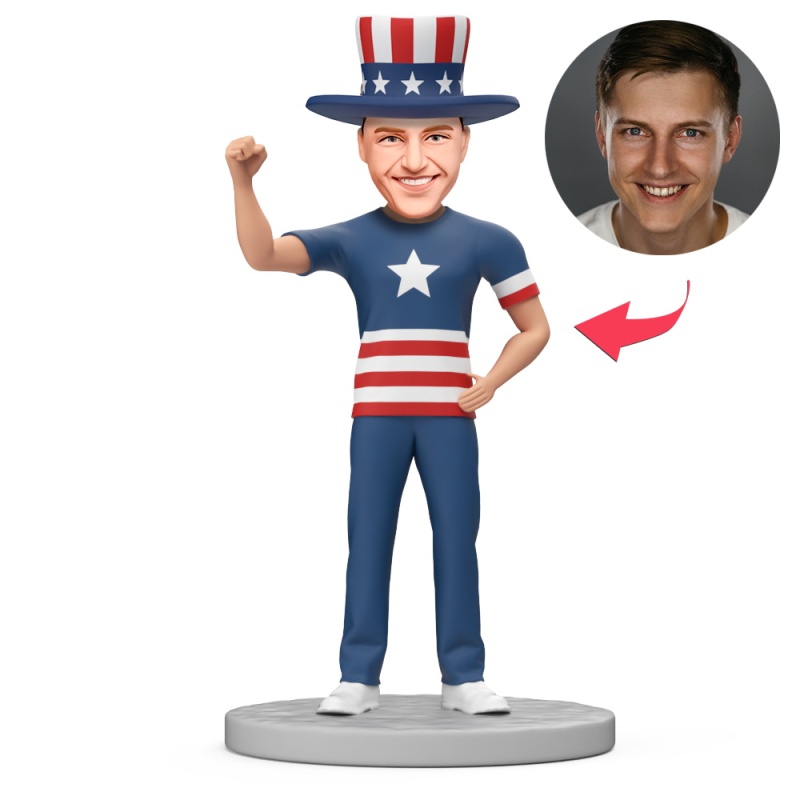 Independence Day Gift Man with Fist Raised Custom Bobblehead with Engraved Text