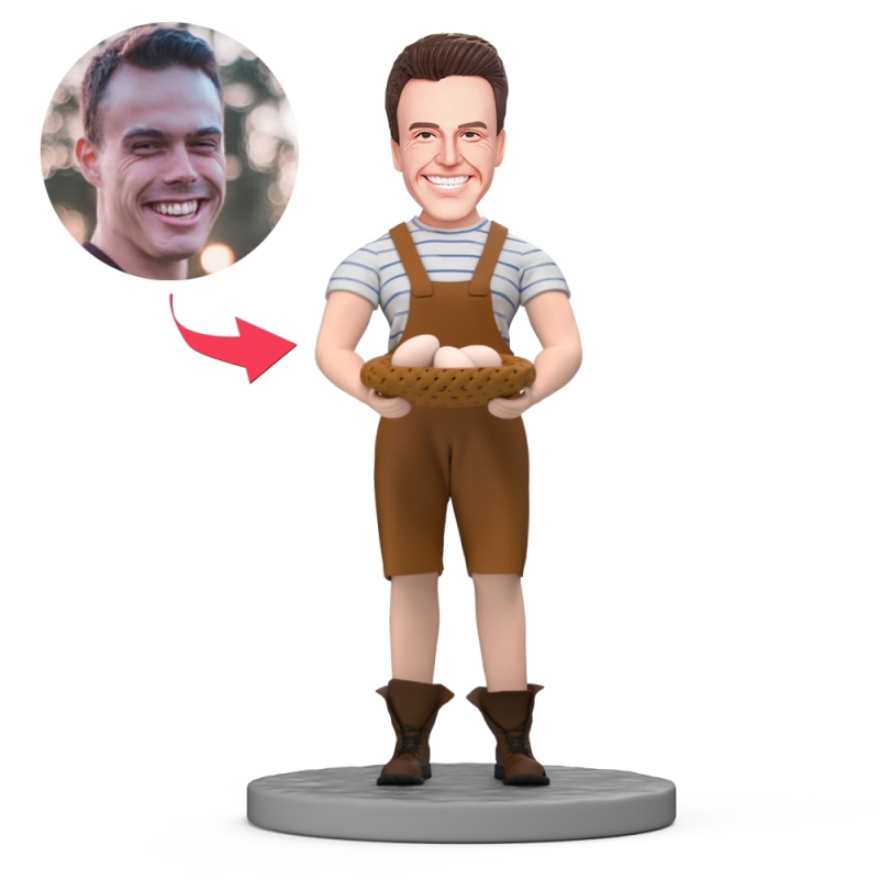 Man Farmer Hold Eggs Custom Bobblehead with Engraved Text