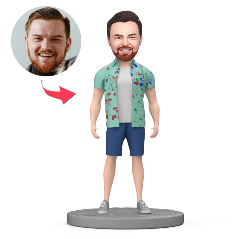 Man Wear Green Hawaiian Shirt Custom Bobblehead with Engraved Text